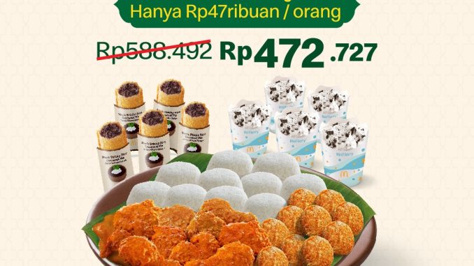 Promo McDonald’s Paket Halalbihalal mulai Rp. 41 ribuan/orang dengan menu ayam, nasi, dessert dan minuman berlaku mulai tanggal 20 Maret 2026 – 5 April 2026.