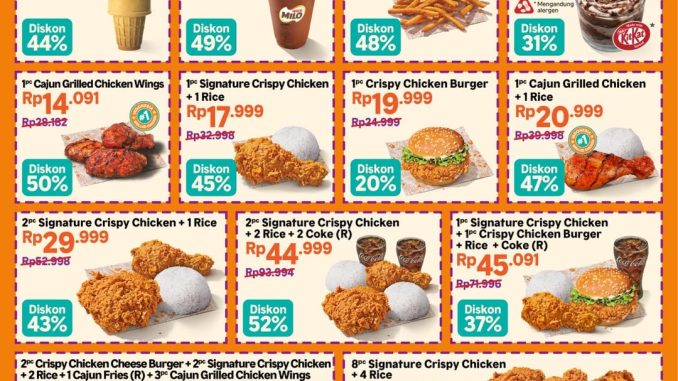 Promo POPEYES NEW! Whole Chicken mulai Rp. 99.000 dengan tiga varian rasa Crispy, Hot Sauce, dan Cajun Grilled. Berlaku di seluruh outlet Popeyes Indonesia.