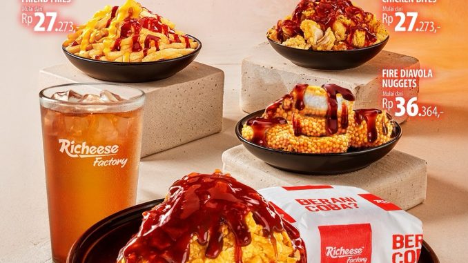 Promo Richeese Factory NEW! Fire Diavola Series mulai dari Rp27ribuan dapat dibeli melalui pembelian Dine In, Takeaway, Drive Thru dan Ojol yaaaa!