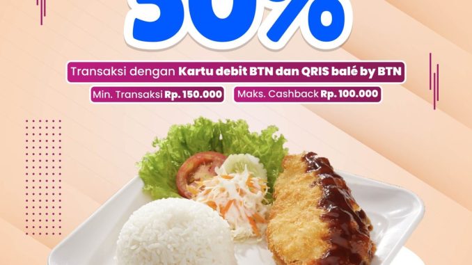 Promo Solaria BTN Cashback 50% dengan Maksimal Cashback Rp. 100.000 untuk transaksi minimal Rp. 150.000 bayar dengan QRIS Bale by BTN atau kartu debit BTN berlaku sampai tanggal 31 Maret 2026.