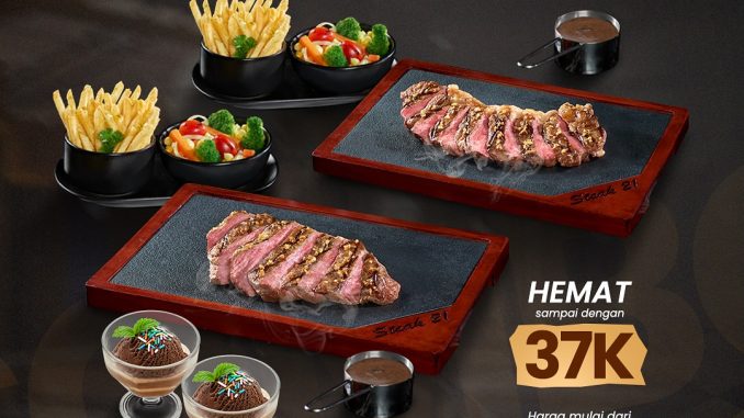 Promo Steak 21 Creamy Truffle Rice with Steak Rp. 69.000, hangat, creamy, truffle juicy + steak melt di mulut, berlaku selama persediaan ada di outlet tertentu.