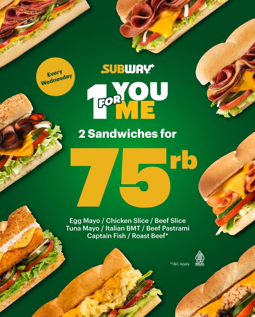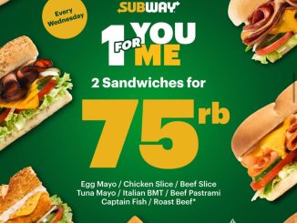 Promo SUBWAY Joyfull Deals Cookie Rp. 12.000 dari harga normal Rp. 20.000 berlaku tanggal 18 – 19 Desember 2025 dengan pembelian sandwich 6-inch.