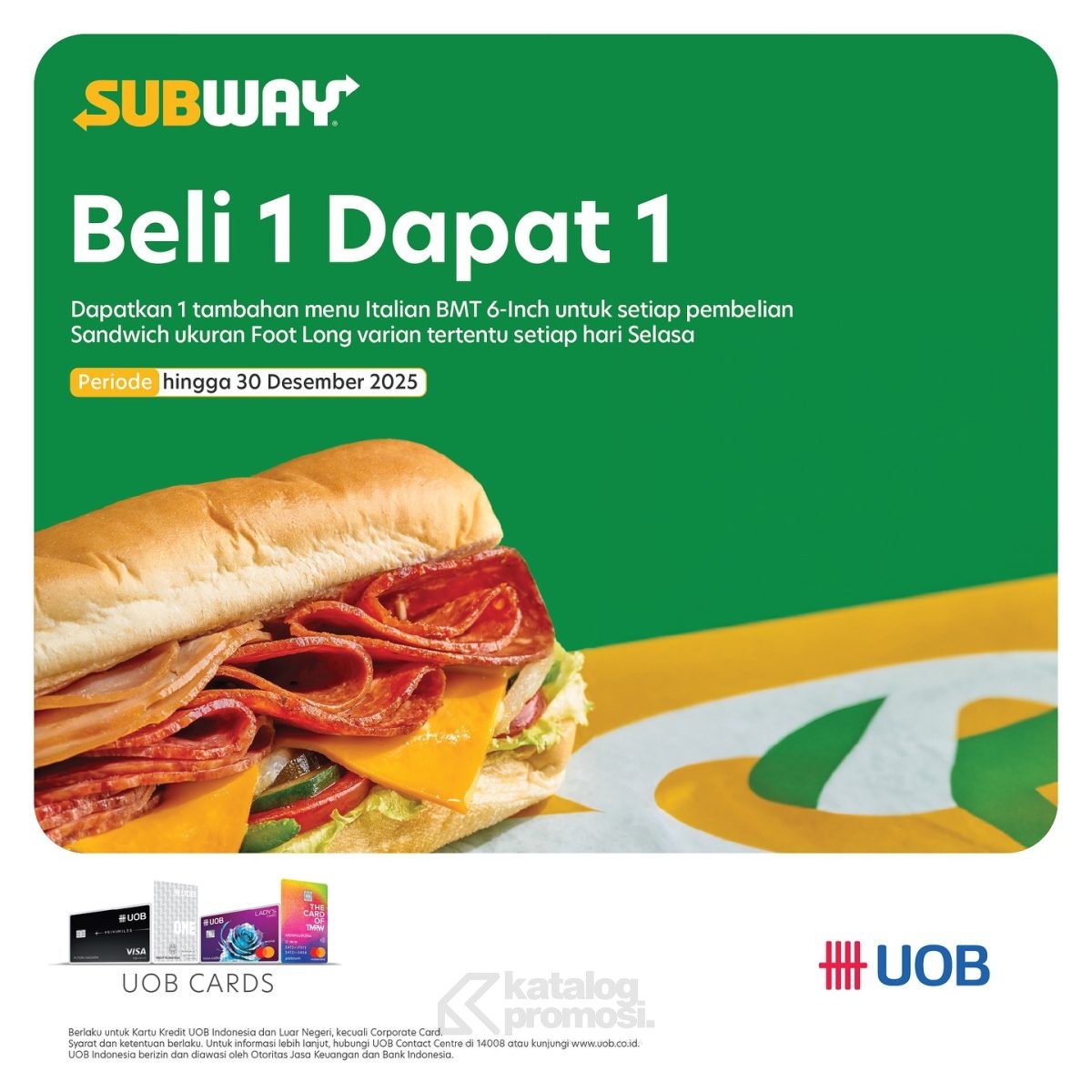 Promo Subway Hari Ibu Diskon 50% Sandwich Ke-2 untuk setiap pembelian sandwich, berlaku mulai tanggal 22 Desember 2025 – 23 Desember 2025 di seluruh outlet Subway Indonesia.