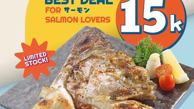 Promo Sushi Go! Wednesdeal Atama Salmon Rp. 15.000, nikmati Shioyaki/Teriyaki yang juicy & gurih setiap Rabu, berlaku selama persediaan masih ada di seluruh outlet.