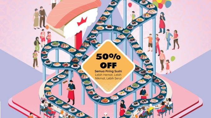Promo Sushi King Buffet All You Can Eat Rp. 149.000 untuk dewasa dan Rp. 99.000 untuk anak-anak, nikmati lebih dari 60 varian sushi lengkap dengan Shizuoka Cha gratis.