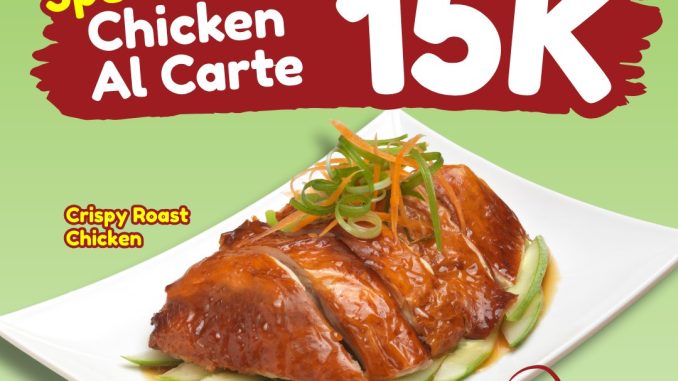 Promo The Chicken Rice Shop Chicken Rice Day Rp. 15.000 berlaku hanya di tanggal 15 Januari 2026 untuk menu Chicken Ala Carte dengan pilihan ayam favorit.