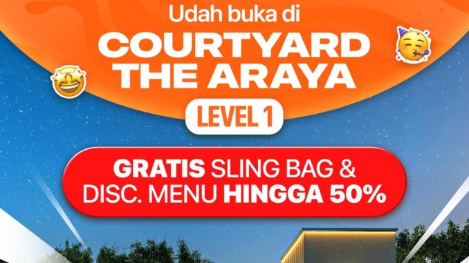 Promo Yoshinoya Grand Opening Courtyard The Araya Diskon 50% + free sling bag untuk 100 pembeli pertama min. Rp. 150 ribu berlaku mulai tanggal 16-22 Maret 2026 di Courtyard The Araya.