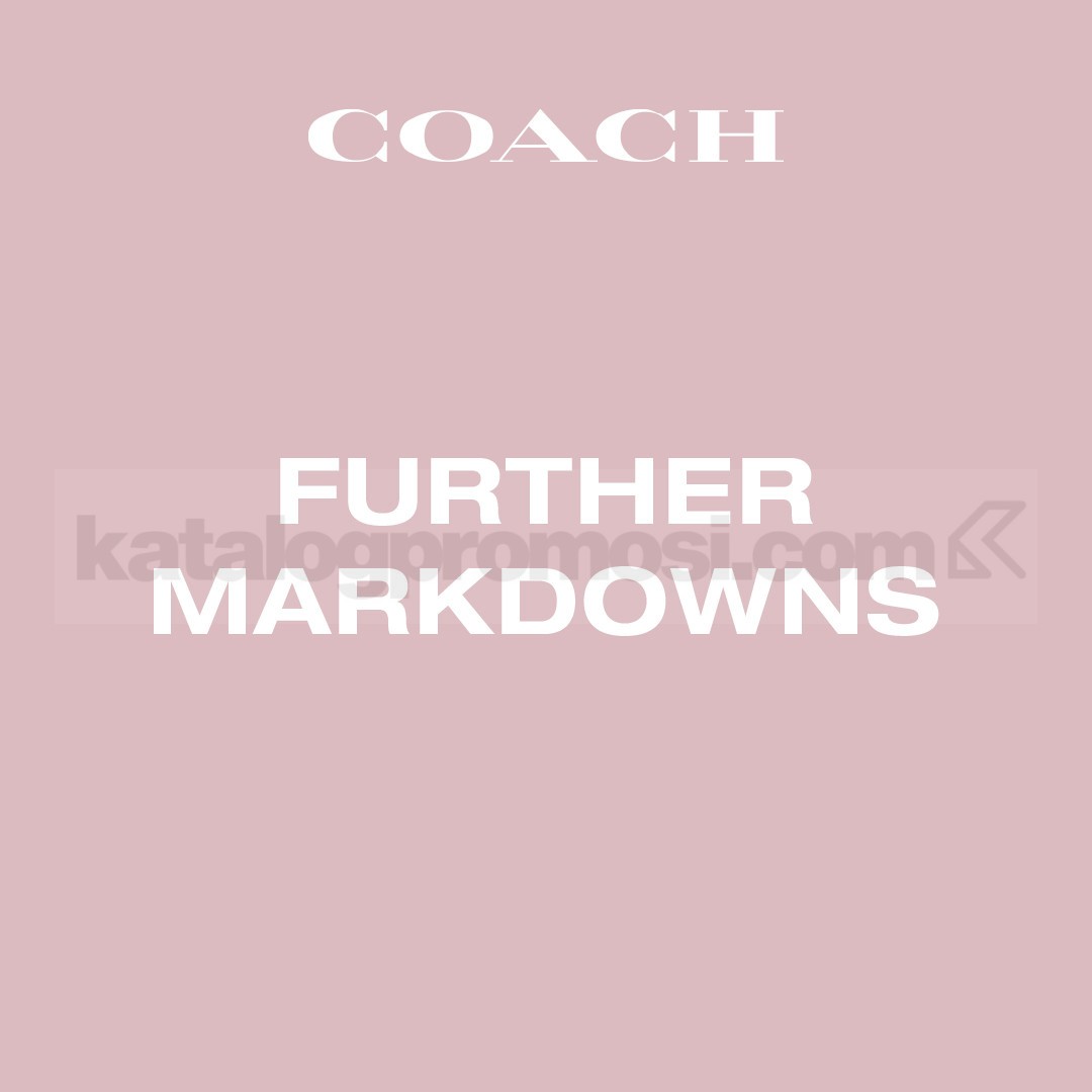Diskon hingga 50% dan tambahan hingga 10% berlaku hanya pada produk Coach tertentu yang termasuk dalam program Further Markdowns.