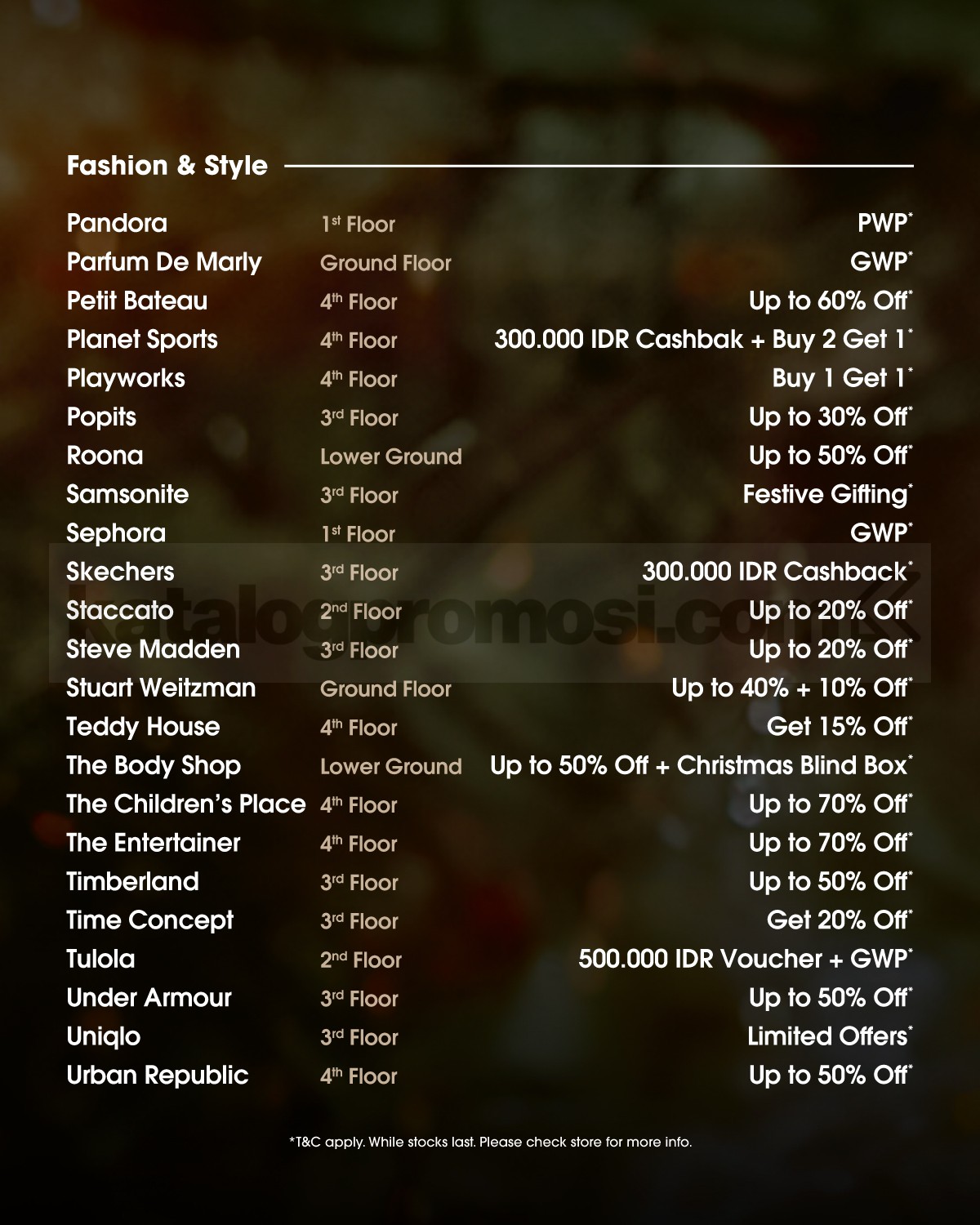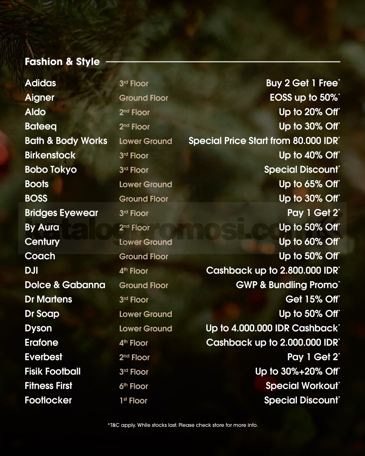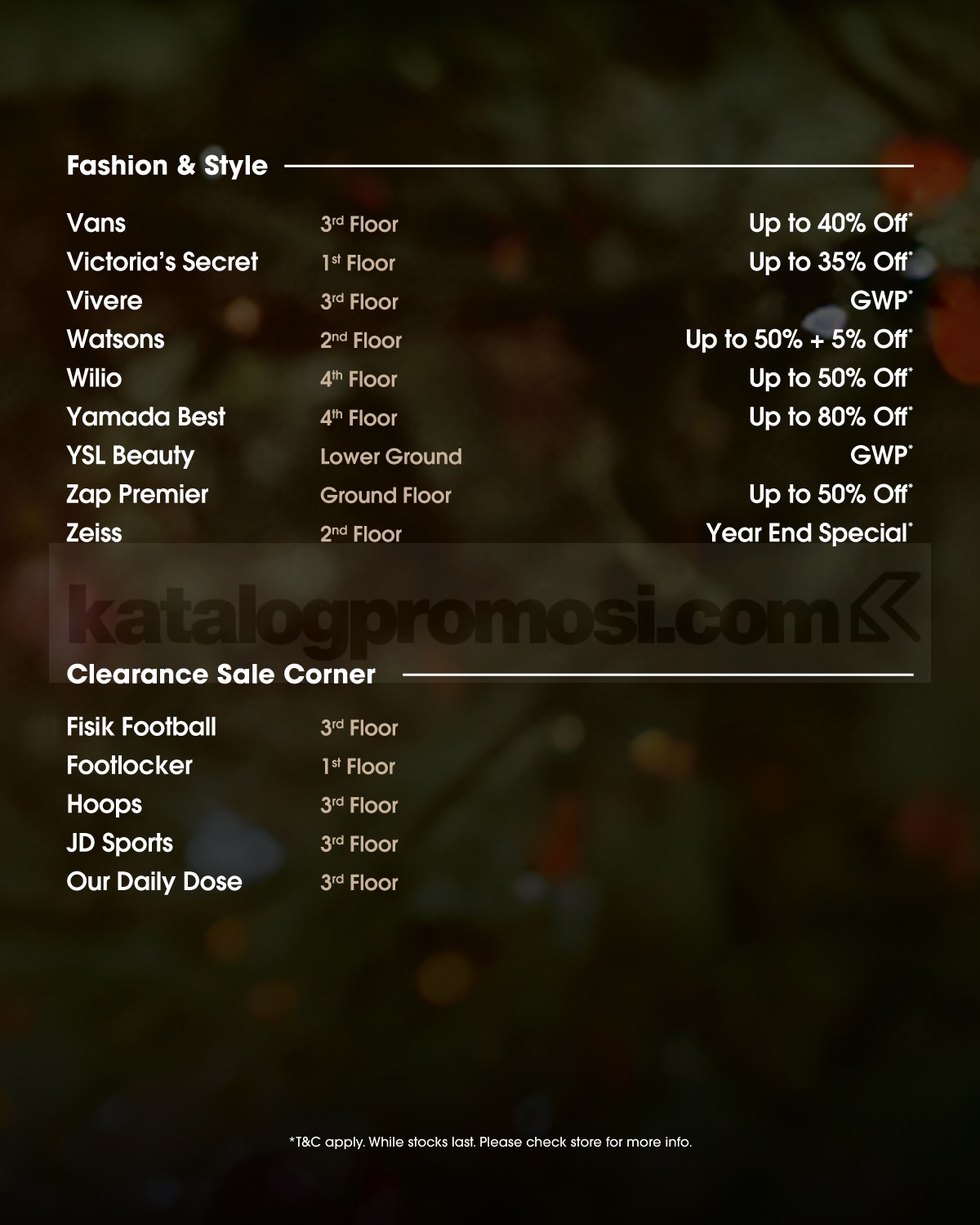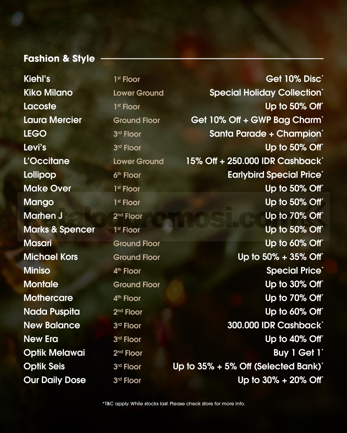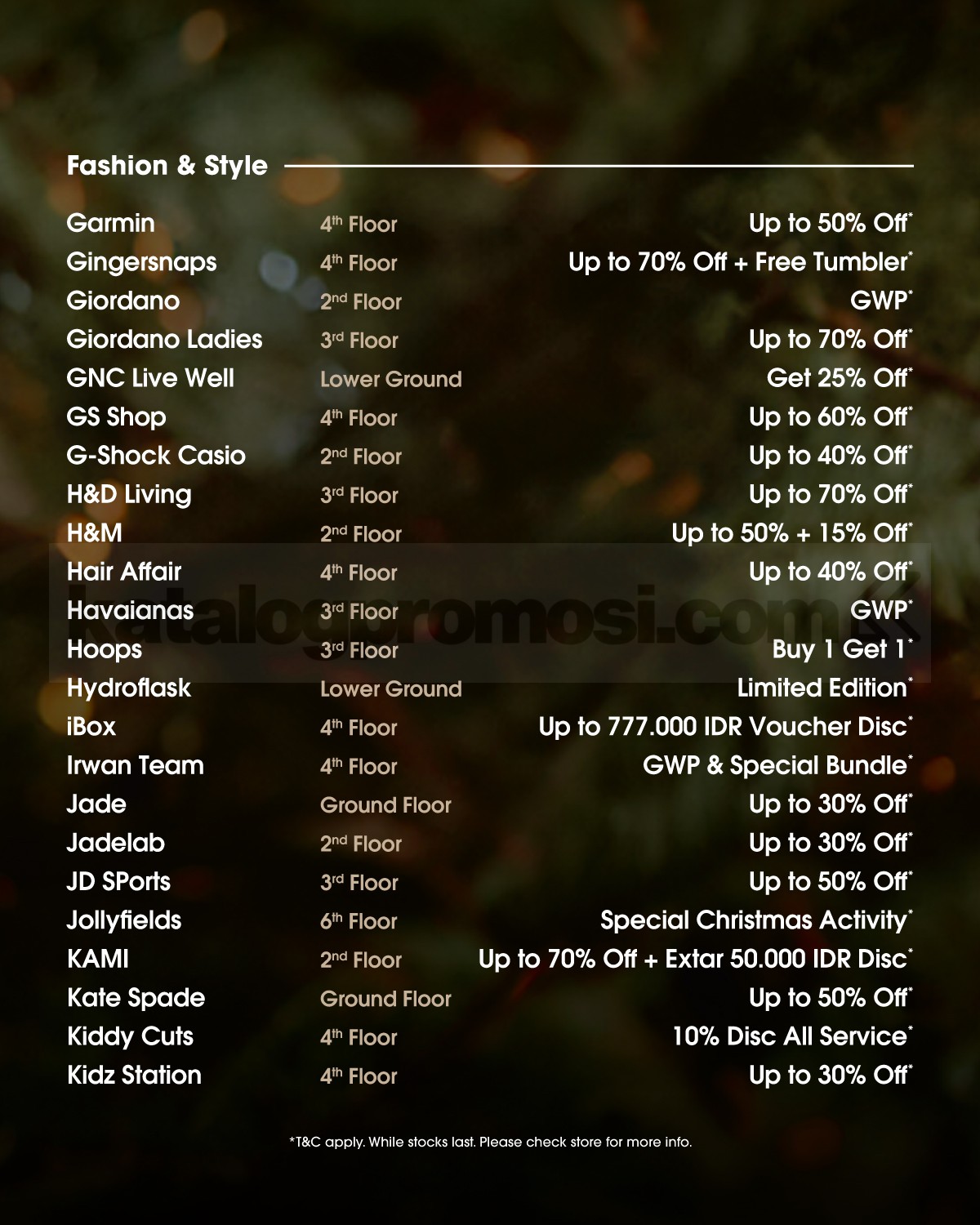 - Diskon hingga 80% berlaku di tenant tertentu sesuai kebijakan masing-masing tenant.