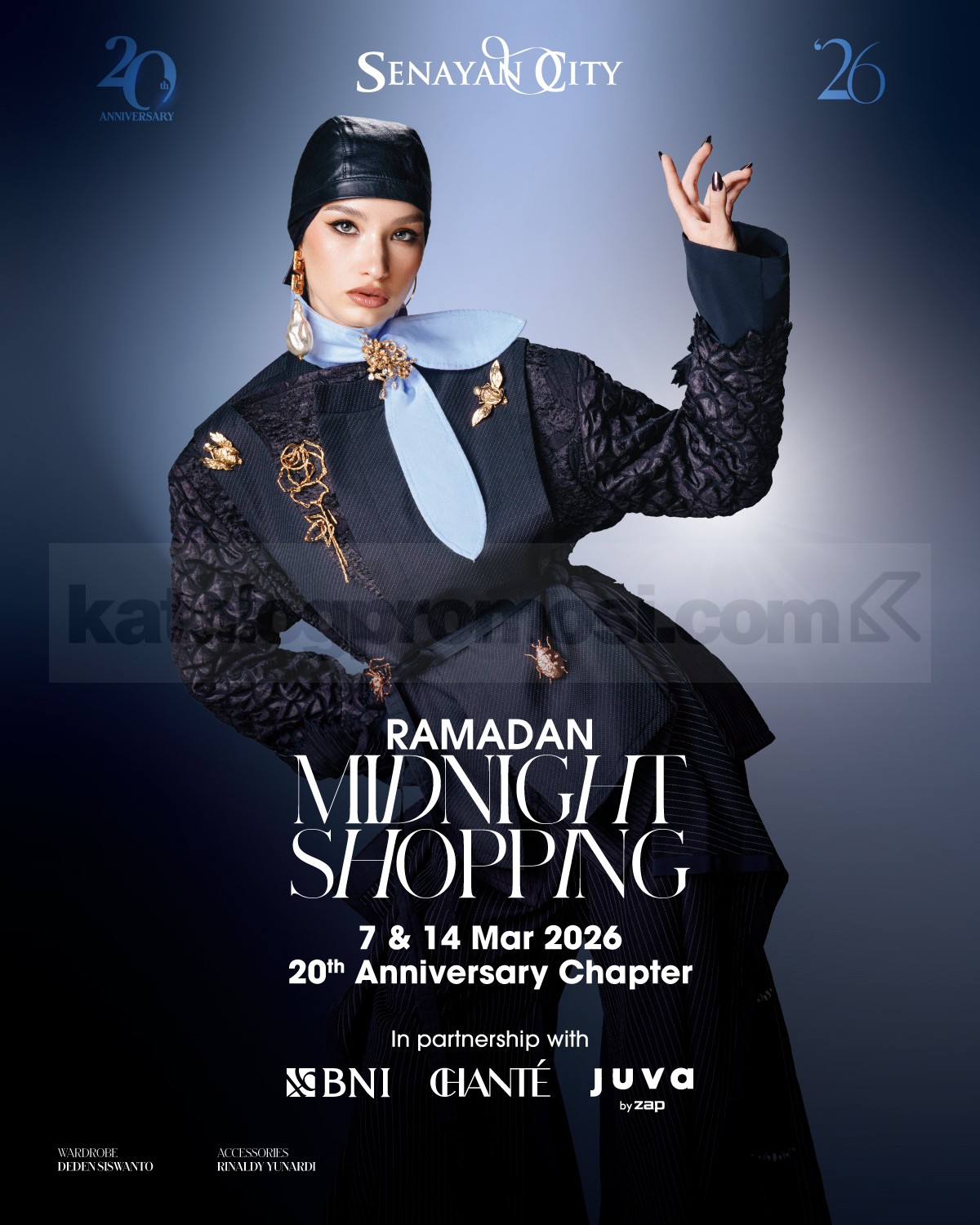 Ramadan Midnight Shopping di Senayan City berlangsung 7 Maret 2026 dan Ramadan Extra Hour pada 14 Maret 2026 menghadirkan diskon hingga 75% serta penampilan Juicy Luicy, Rewind, Kahitna, dan The Soulful.