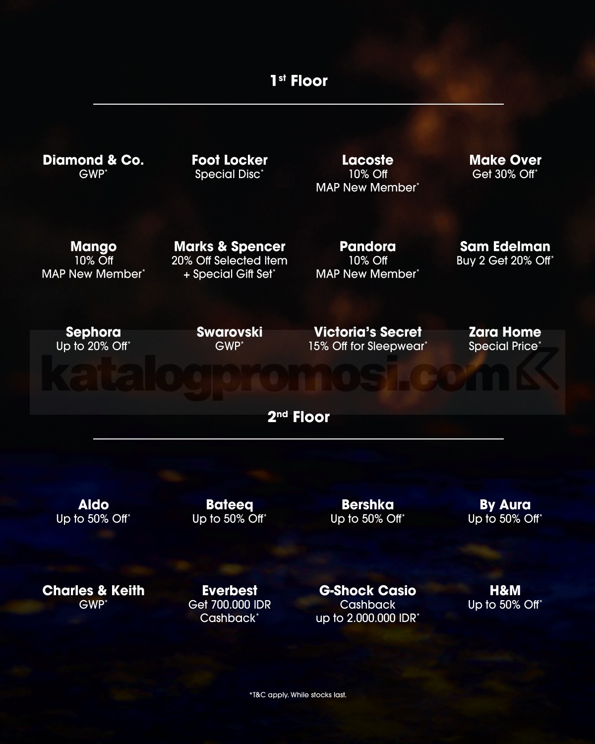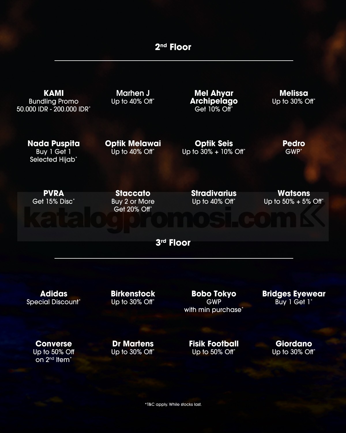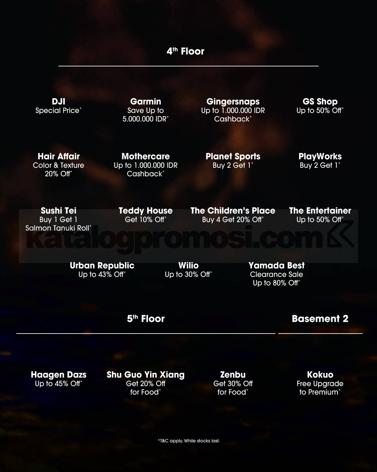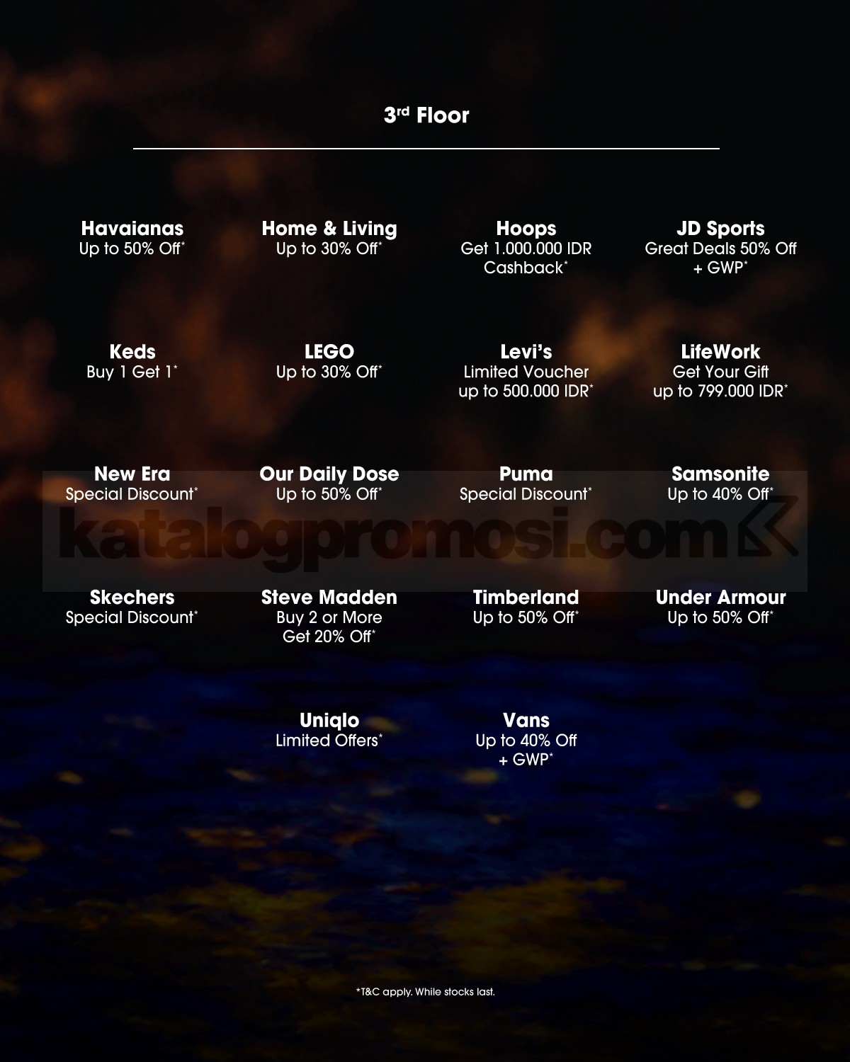- Diskon hingga 75% tersedia di tenant tertentu.
