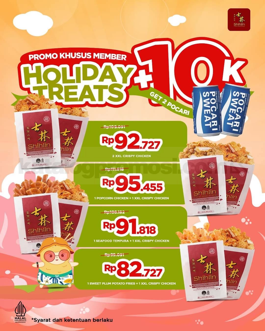 - Berlaku di outlet Shihlin kecuali Bazaar, Dufan, Kalimantan, Bandara, Mall of Serang, Palembang, Batam, Makassar, Medan, dan Pekanbaru.