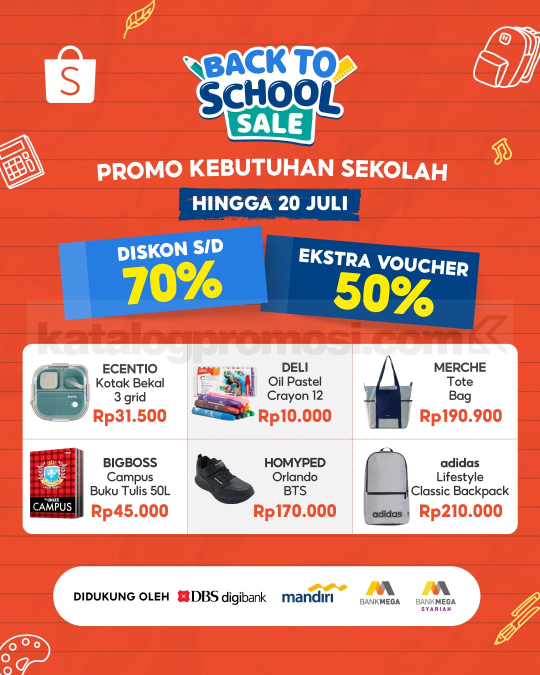 Shopee Back to School Sale Diskon hingga 70% + Ekstra Voucher 50%.