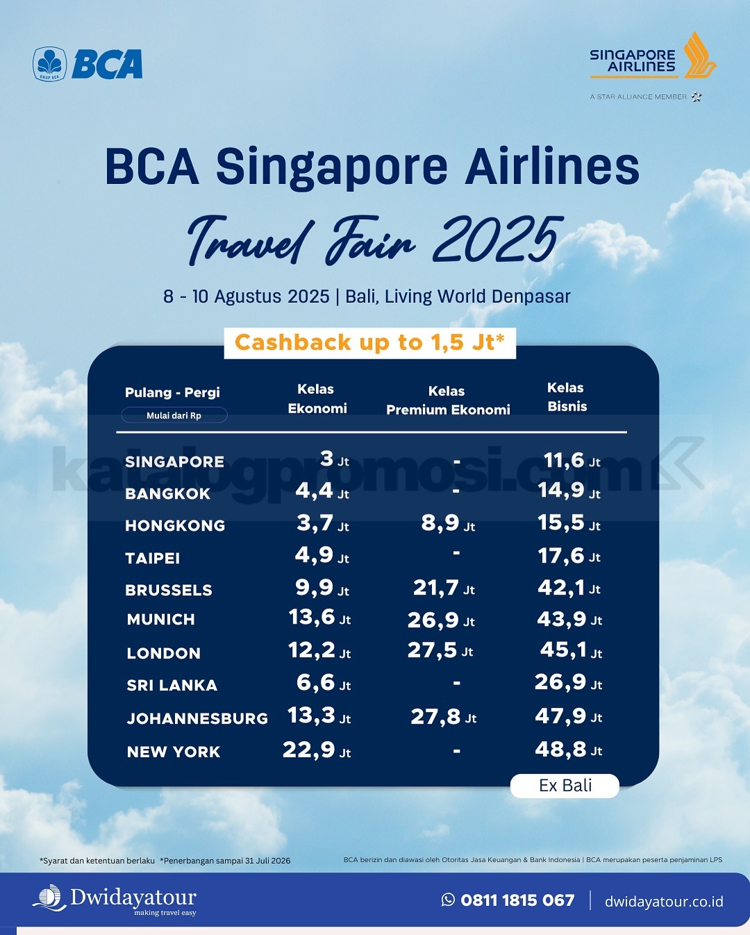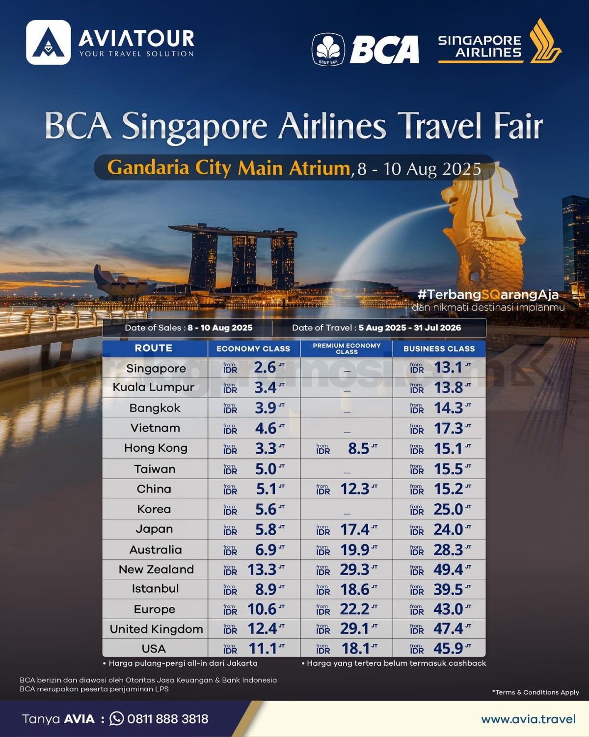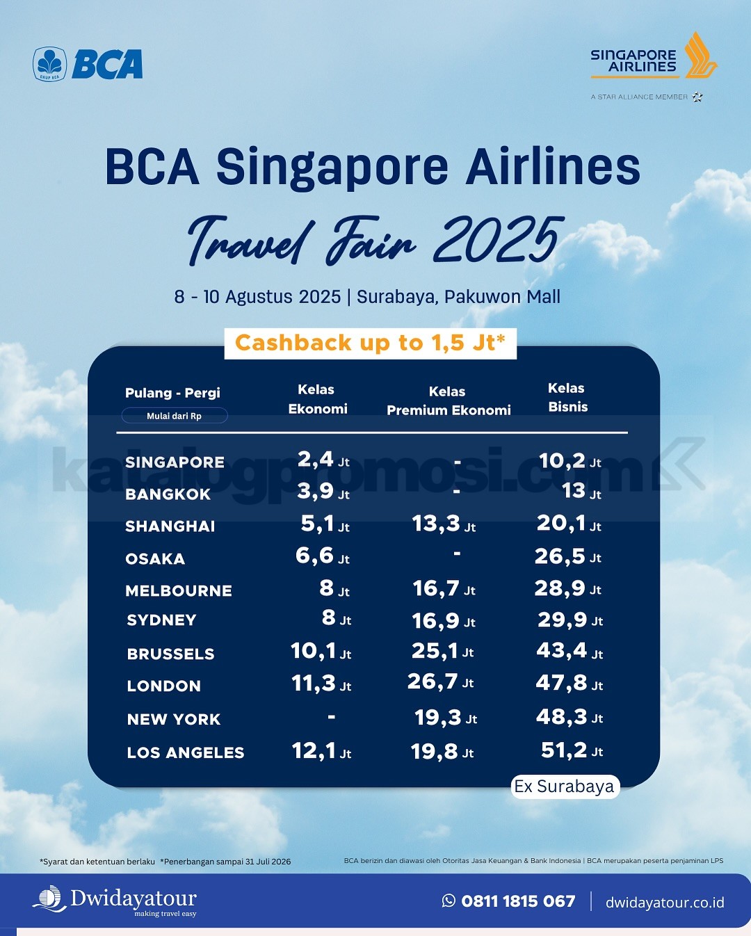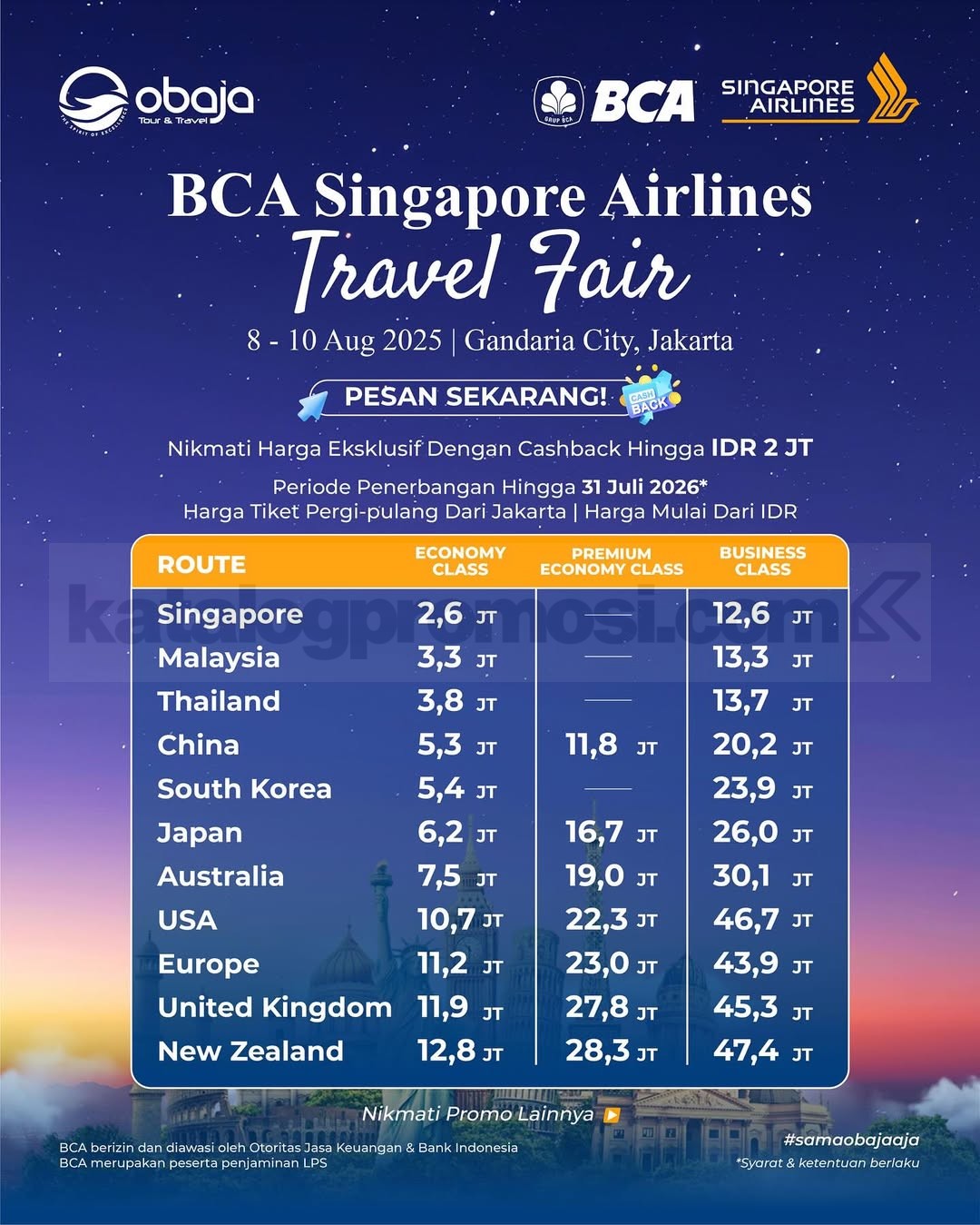 – Pre-book harga travel fair mulai Selasa, 15 Juli 2025 melalui agen perjalanan yang berpartisipasi