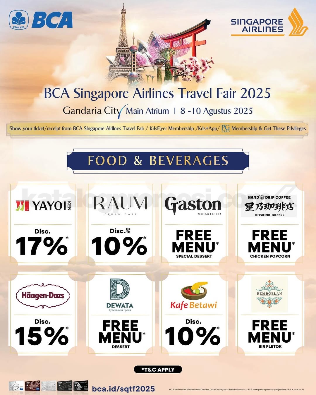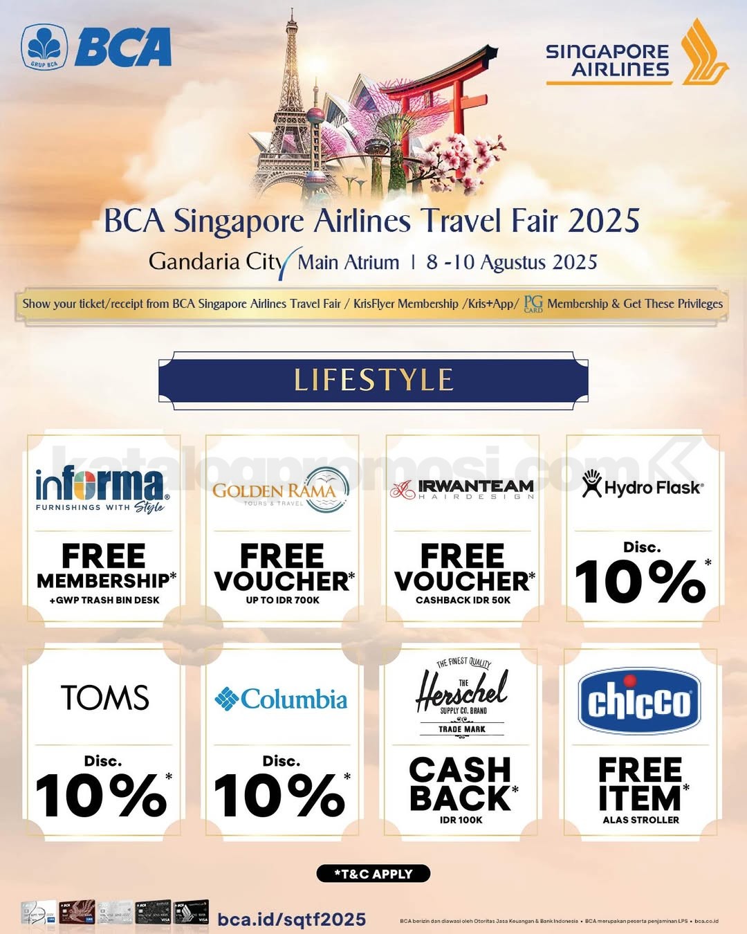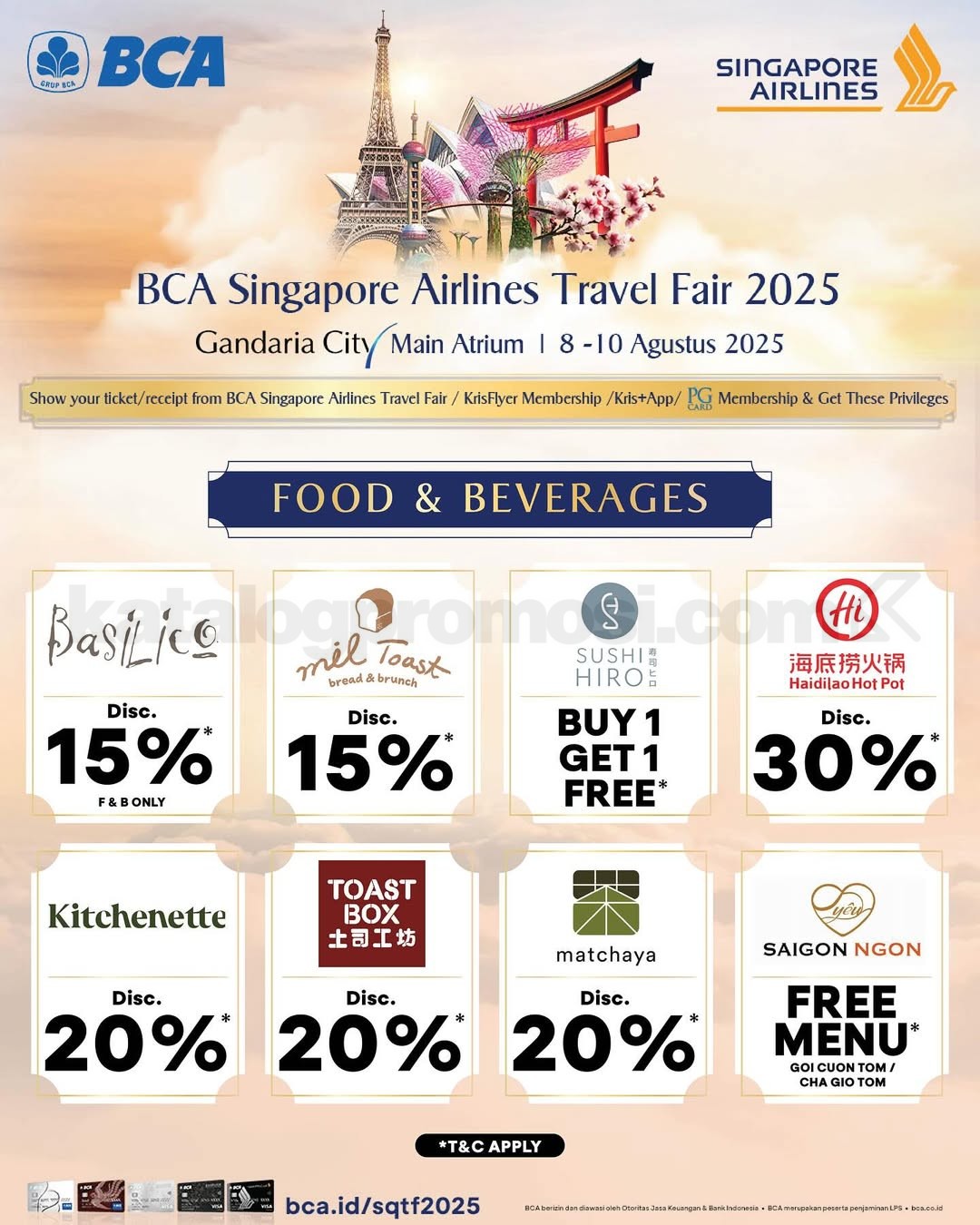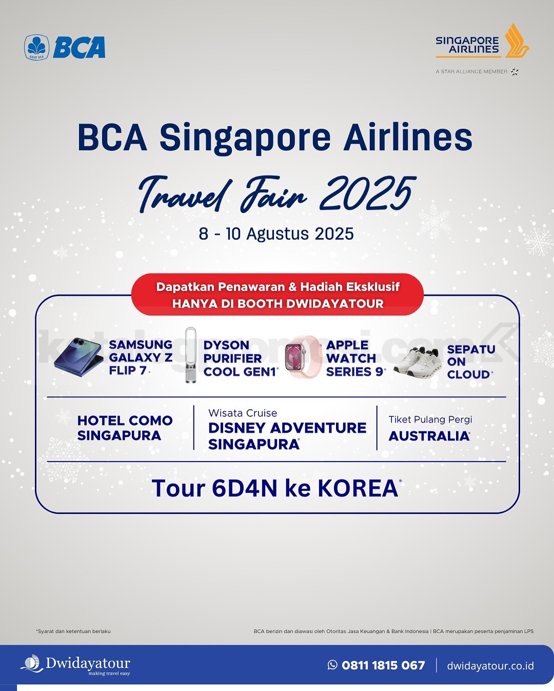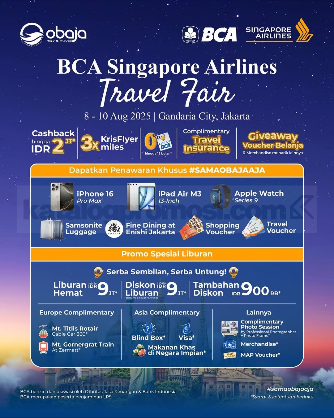 Singapore Airlines BCA Travel Fair 2025 akan kembali hadir pada tanggal 8–10 Agustus 2025 di empat kota besar di Indonesia. Bersiaplah menjelajahi destinasi impianmu dengan penawaran harga spesial, fasilitas eksklusif, dan promo istimewa untuk pemegang kartu BCA.