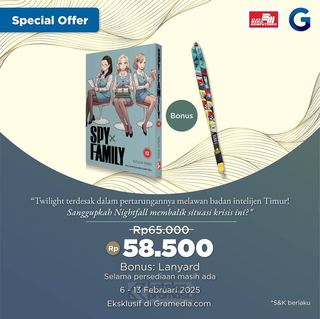 Special Offer Spy x Family 13 di Gramedia Online dapatkan Diskon dan Bonus Lanyard. Berlaku hingga 13 Februari 2025.