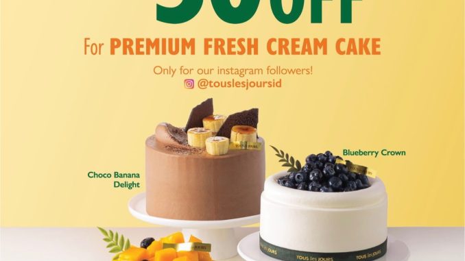 Promo Tous Les Jours 30% Off Premium Fresh Fruit Cream Cakes nikmati choco banana, blueberry crown, golden mango delight