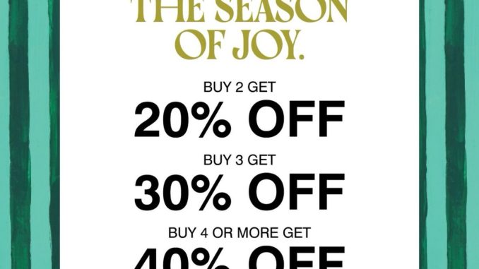 Promo HUSH PUPPIES Season of Joy diskon hingga 40% berlaku selama persediaan masih ada dengan skema beli lebih banyak dapat potongan lebih besar di store tertentu.