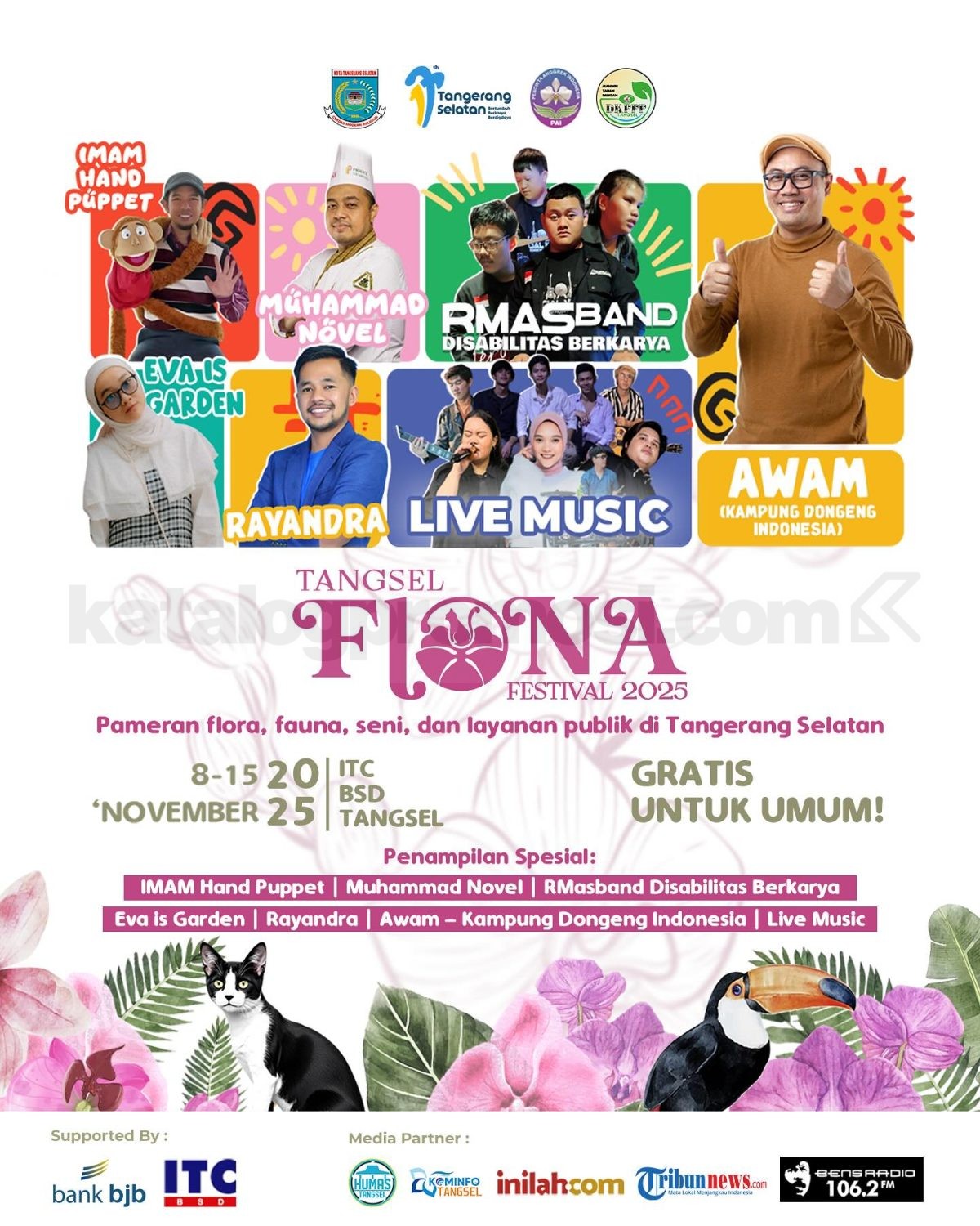 Tangsel Flona Festival 2025 di ITC BSD Tangerang Selatan hadir dengan pameran flora, fauna, seni, dan layanan publik, berlangsung 8โ15 November 2025.