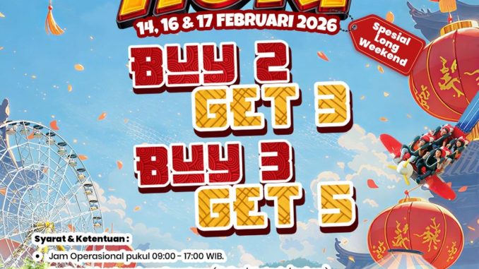 Promo Jungleland High Season Lebaran paket mulai Rp. 700.000 untuk 4 orang dan Rp. 990.000 untuk 6 orang, pilih 1 wahana gratis. Berlaku mulai tanggal 21 Maret 2026 – 29 Maret 2026.
