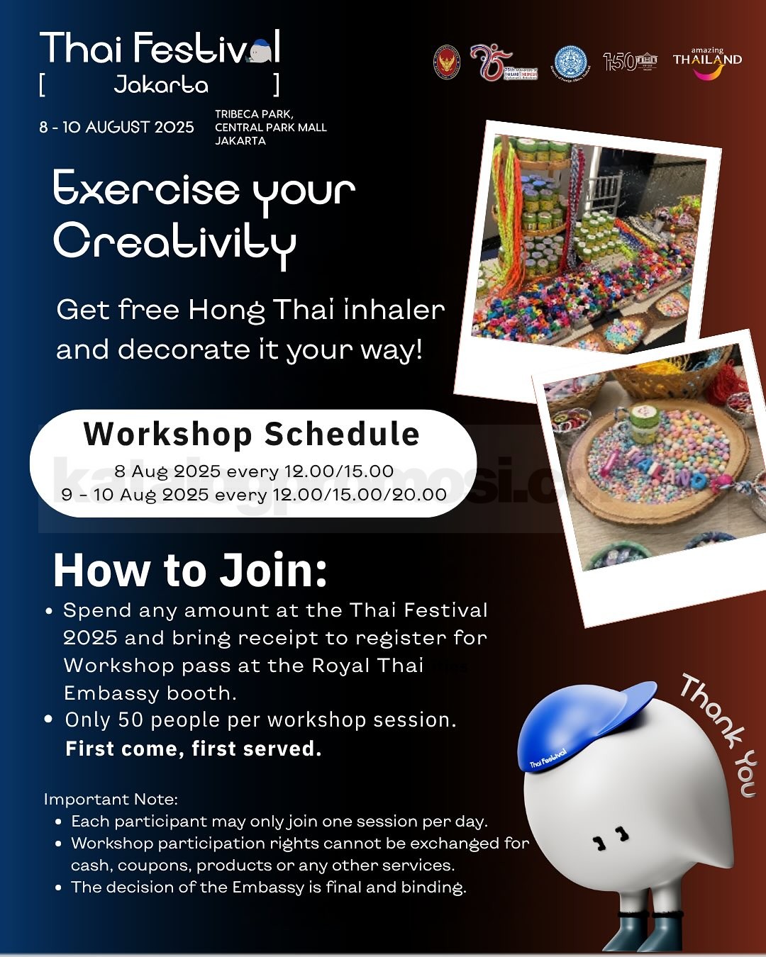 - Info lebih lengkap tersedia di booth Kedutaan Besar Thailand (RTE) selama event