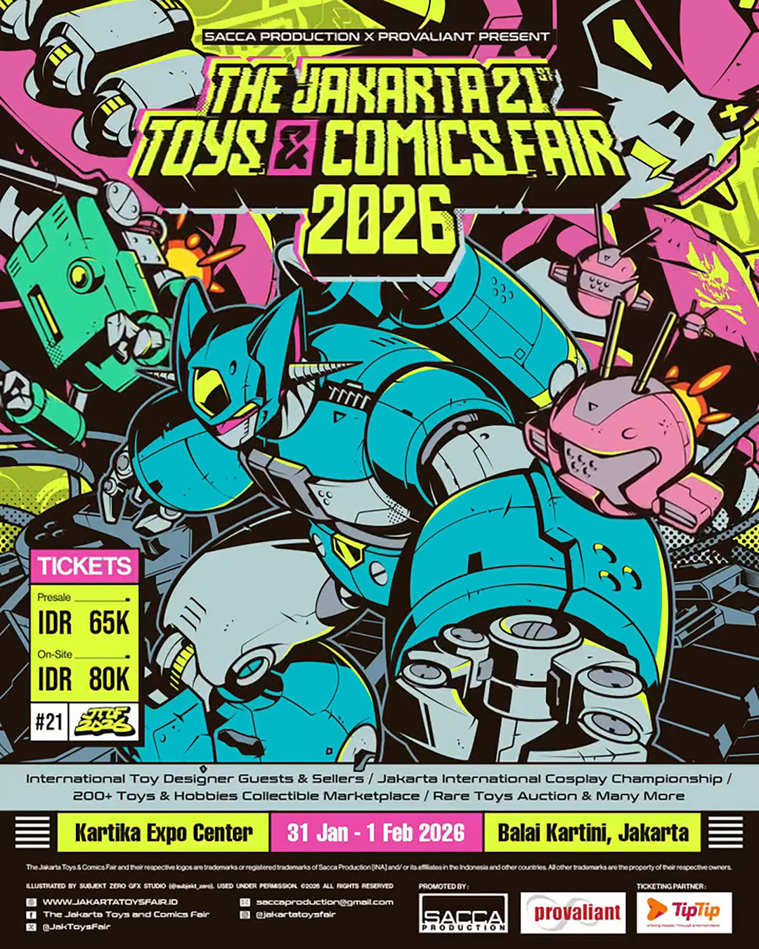 THE JAKARTA 21st TOYS AND COMICS FAIR 2026 di Jakarta Selatan kembali digelar pada 31 Januari β 1 Februari 2026. Event mainan dan pop culture terbesar ini berlangsung selama 2 hari penuh di Kartika Expo Center Balai Kartini.