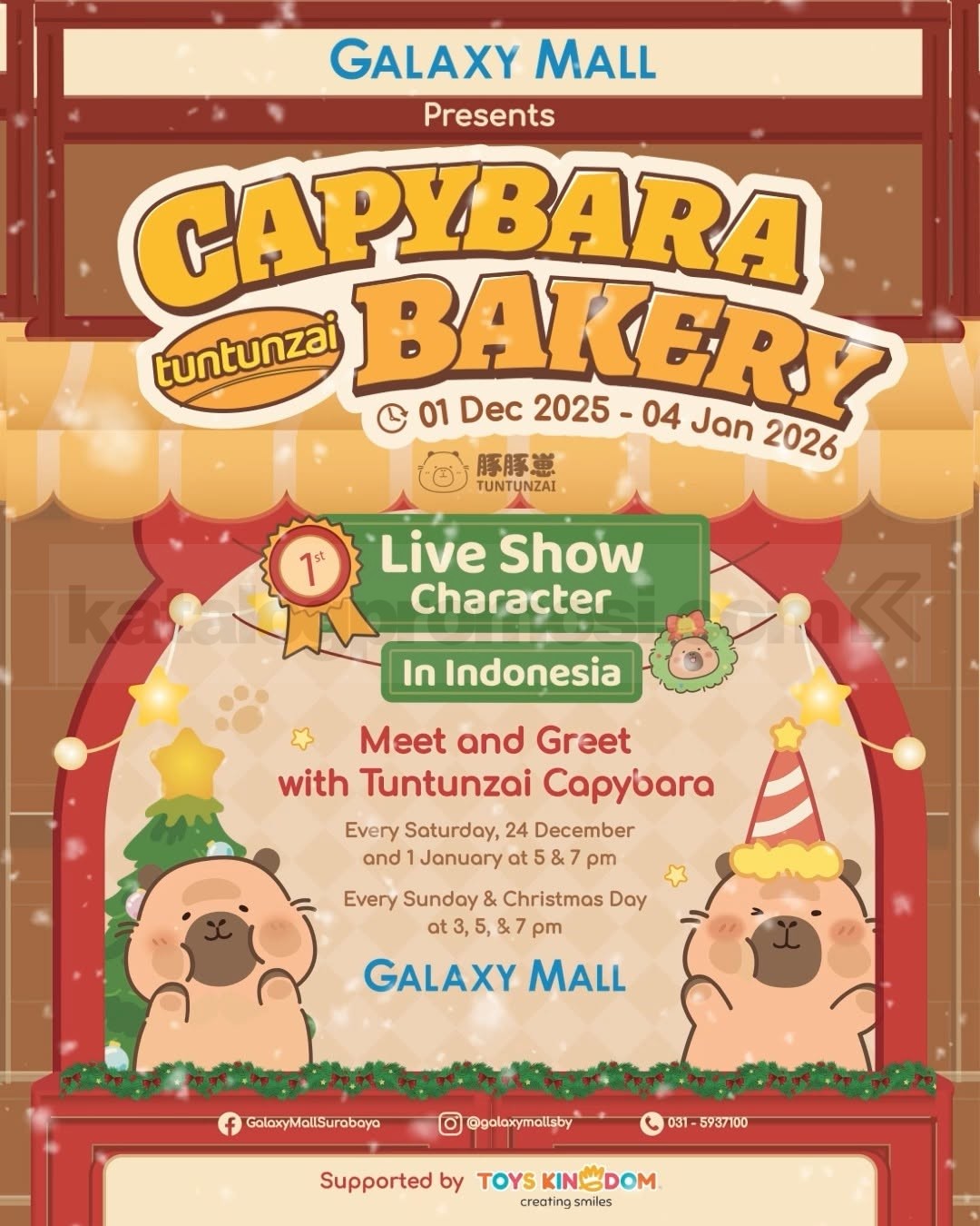 - Tuntunzai Capybara Live Show dan aktivitas Natal di area event Galaxy Mall Surabaya.