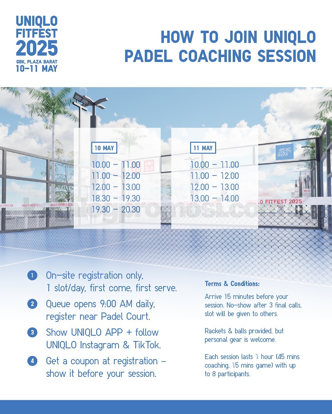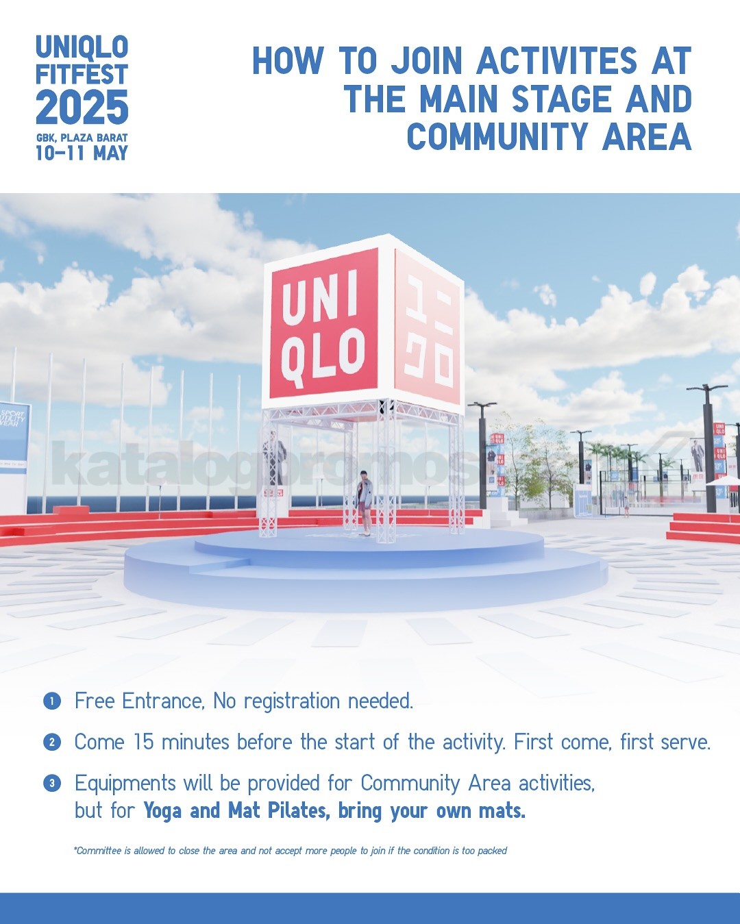 UNIQLO FitFest 2025 terbuka untuk umum dan gratis. Untuk mengikuti kelas dan mendapatkan merchandise, peserta disarankan untuk: