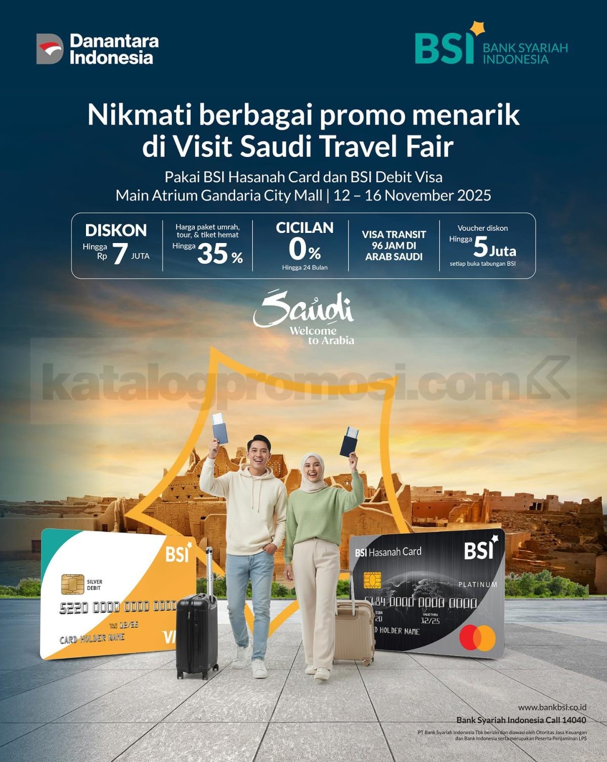 - Voucher dan benefit tambahan mengikuti kebijakan BSI Hasanah Card dan Debit Visa.