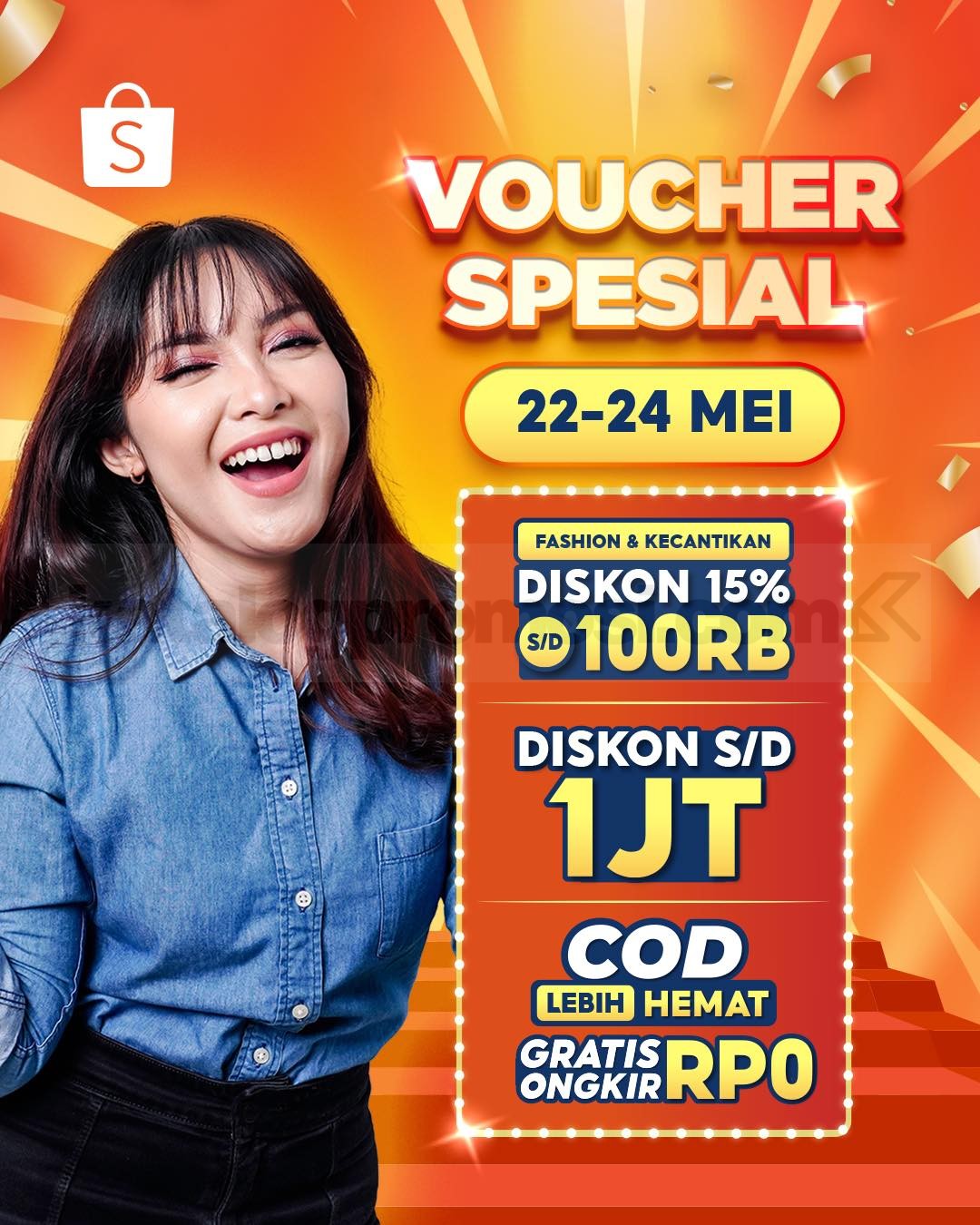 Cuma dari tanggal 22–24 Mei, kamu bisa dapetin diskon 15% sampai Rp100 ribu khusus buat produk fashion dan kecantikan. Tambah seru, ada juga diskon sampai 1 juta, COD lebih hemat, dan pastinya gratis ongkir Rp0!