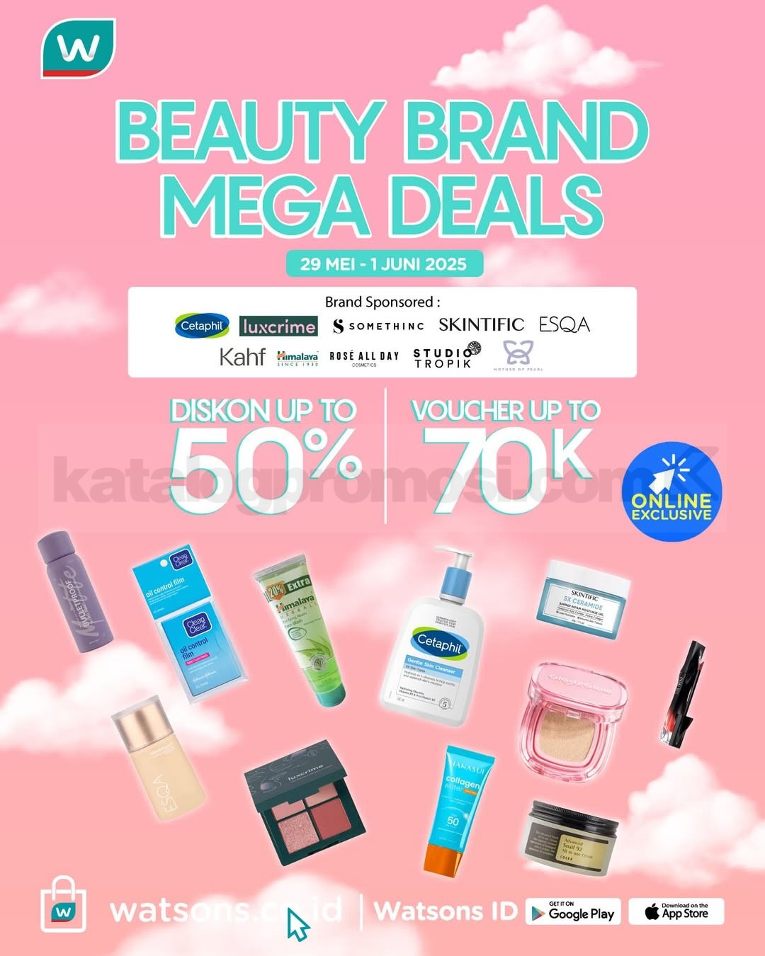 β¨ Lagi cari alasan buat checkout skincare wishlist kamu? Ini dia jawaban paling pas: Beauty Brand Mega Deals dari Watsons! π Kamu bisa nikmati diskon hingga 50% + voucher hingga 70 ribu buat belanja berbagai produk kecantikan dari brand favorit kamu!