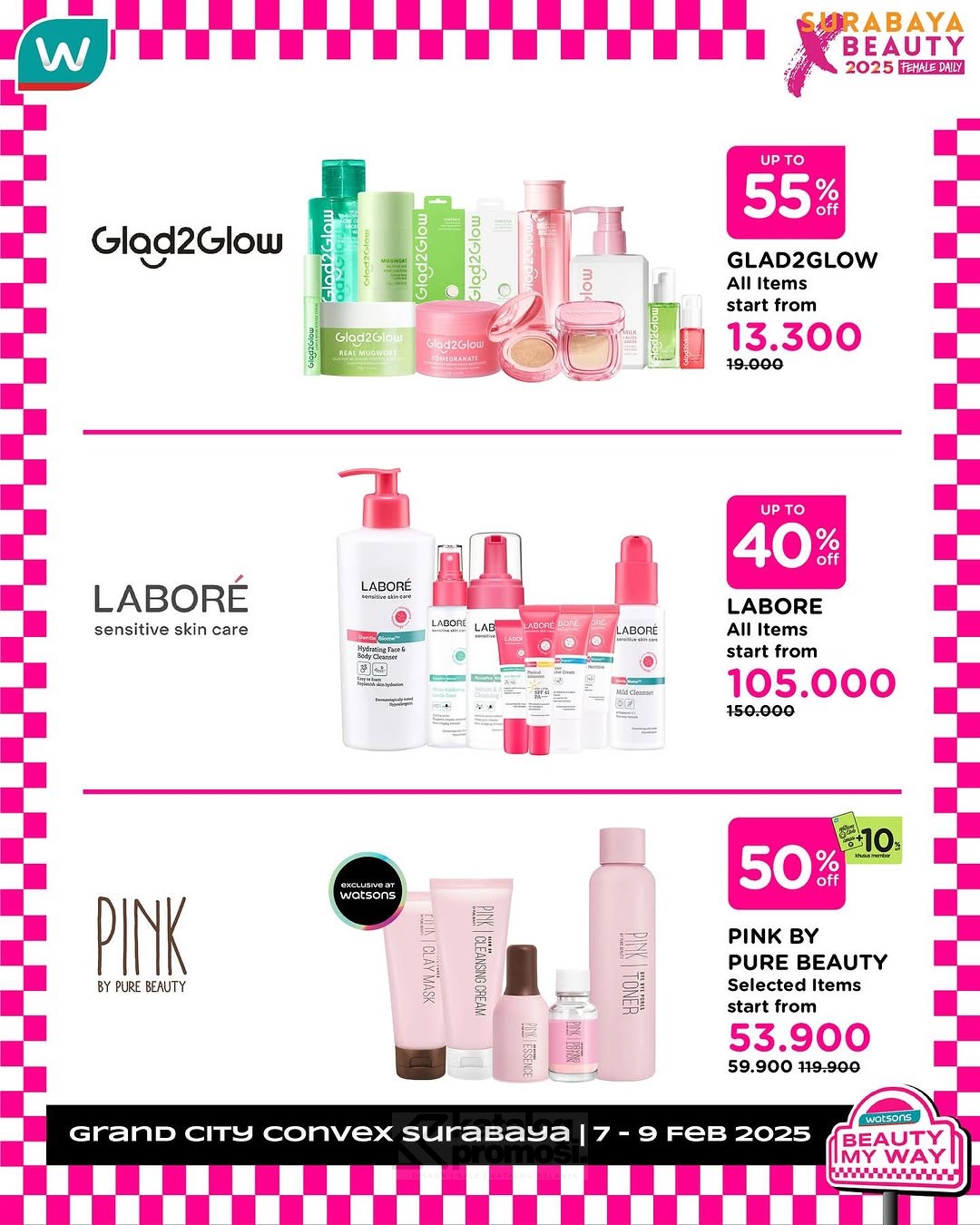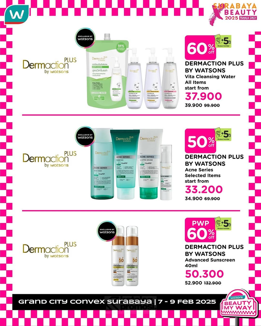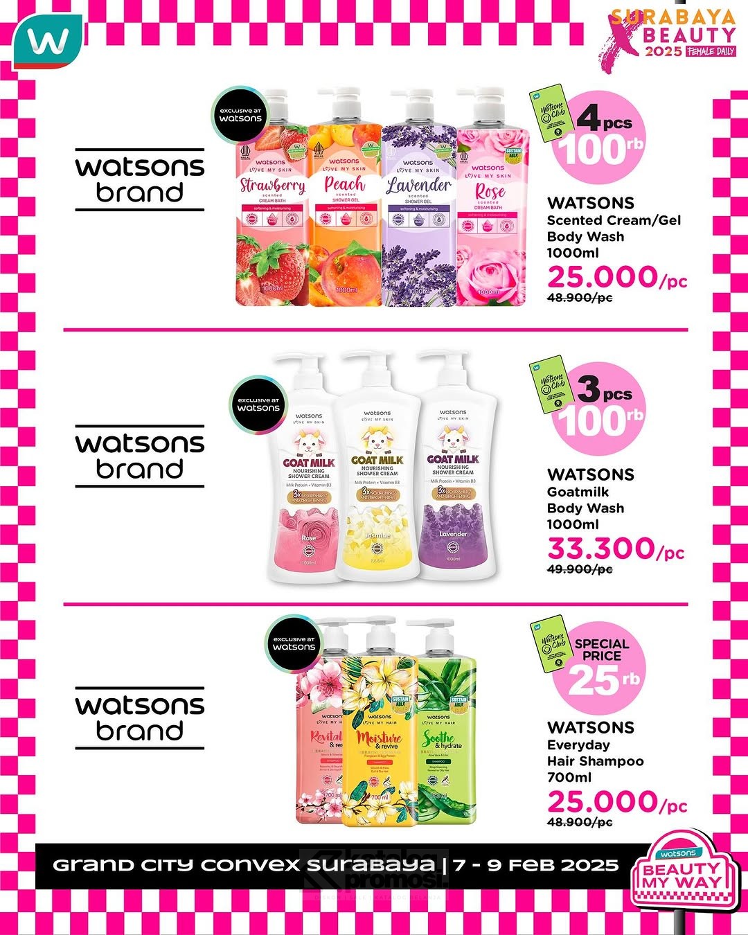 Watsons Hadir di SURABAYA X BEAUTY 2025 Kejar Diskon Sebelum Kehabisan! Berlangsung hingga 09 Februari 2025.