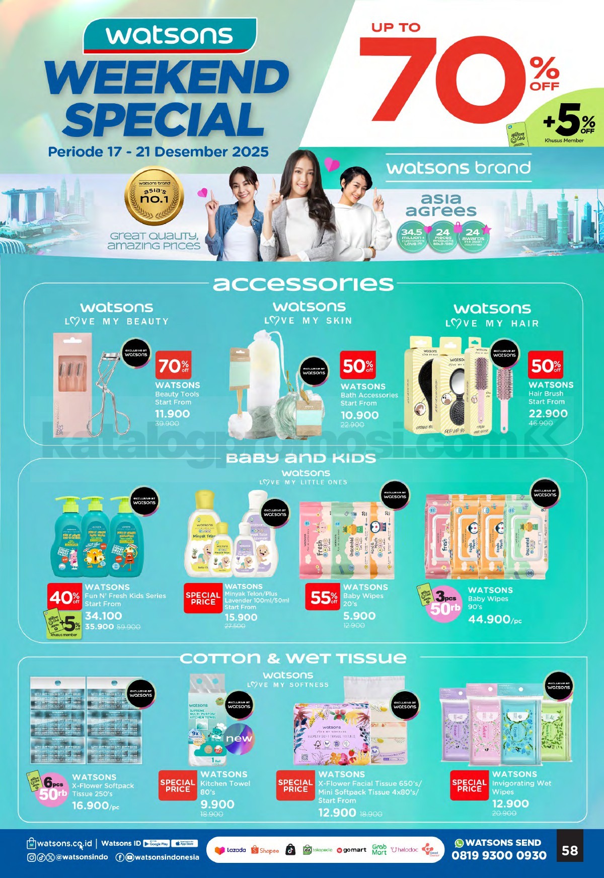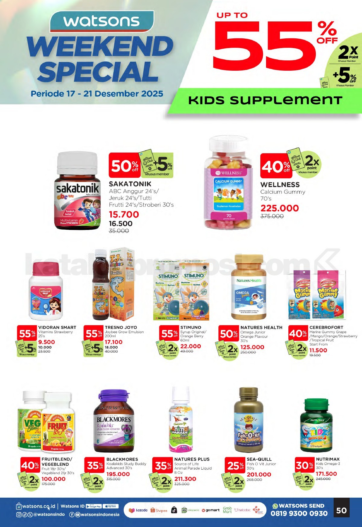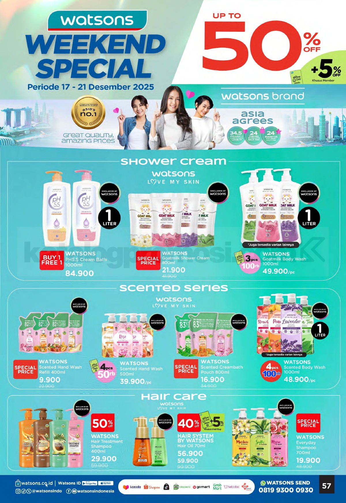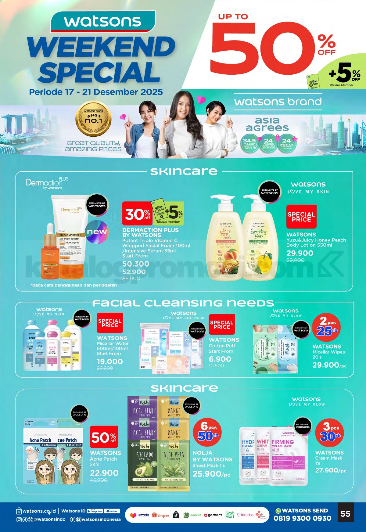 WATSONS WEEKEND SPECIAL Diskon hingga 50% Berlaku mulai tanggal 17-21 Desember 2025