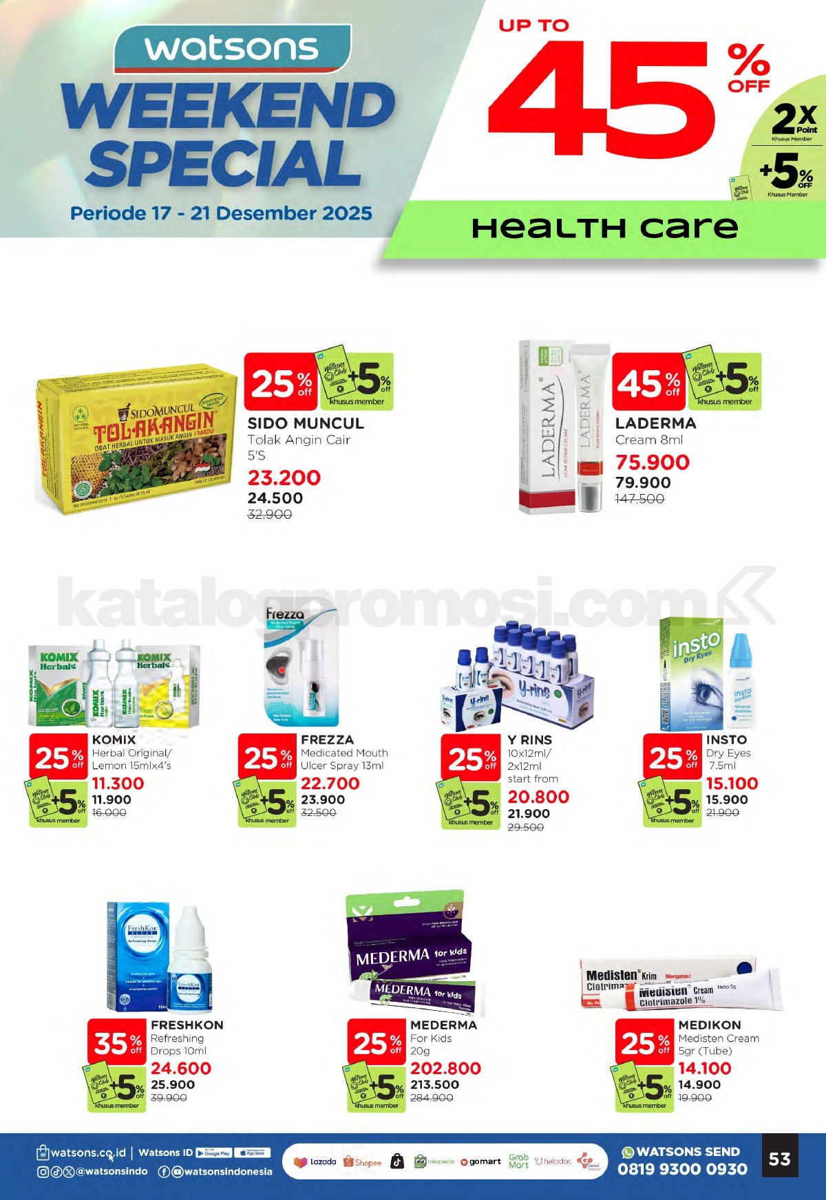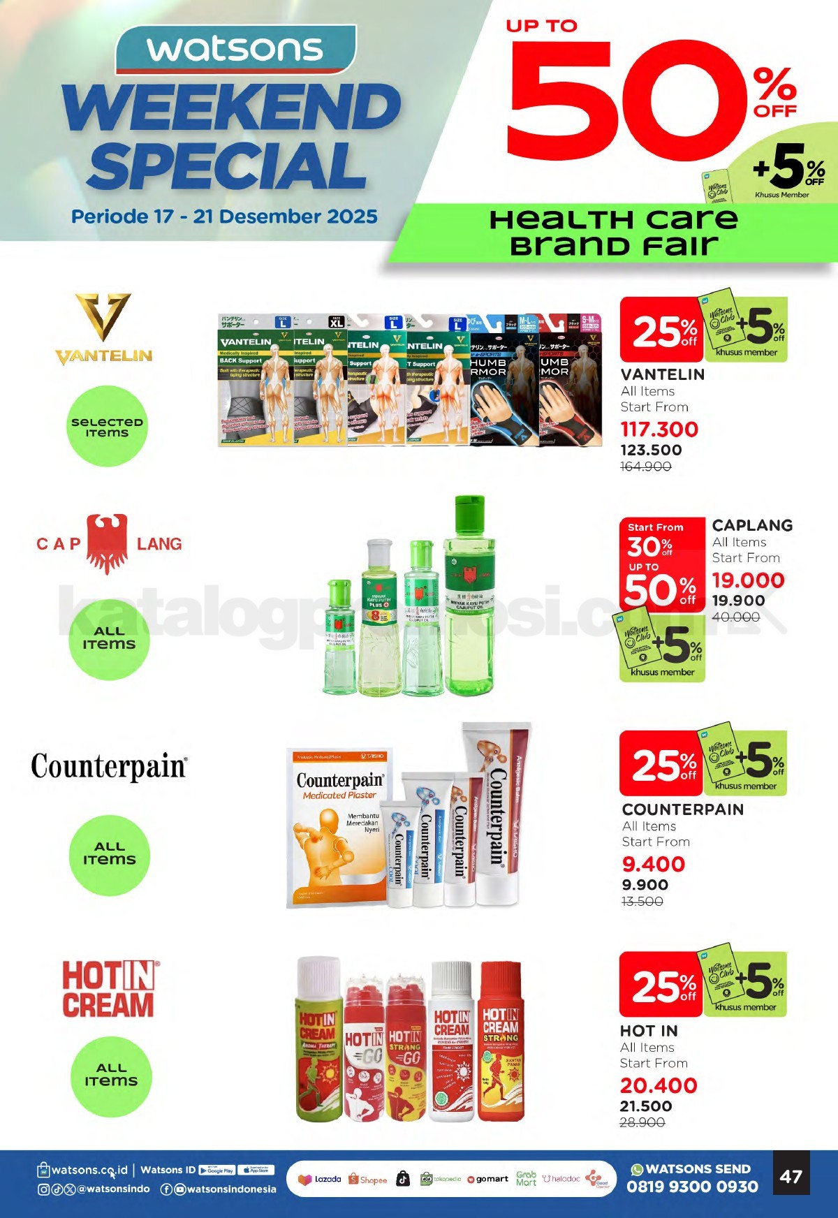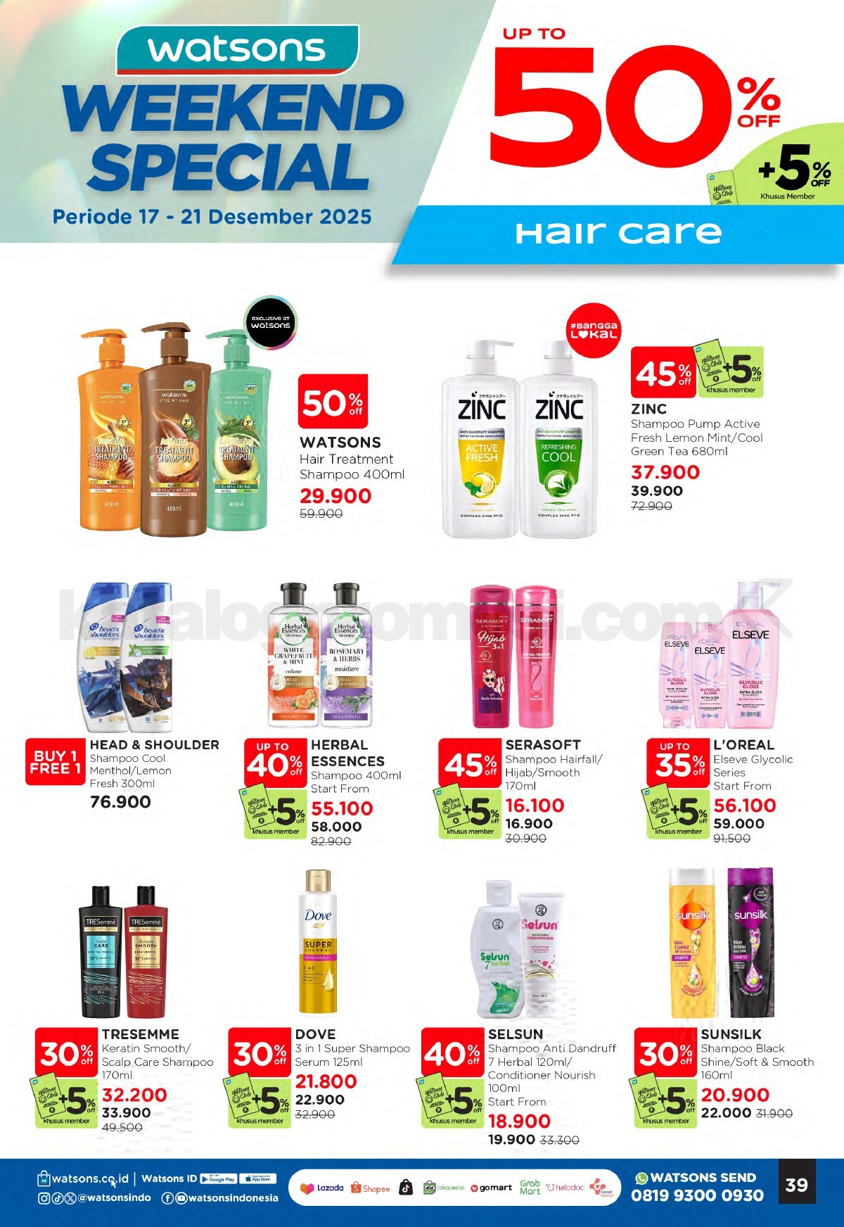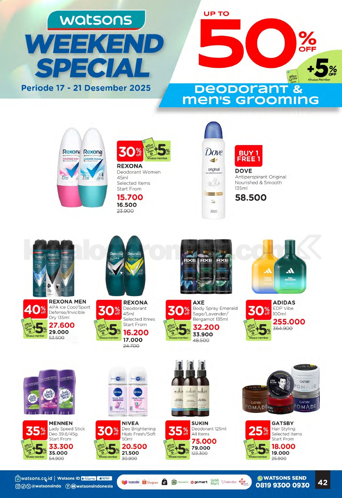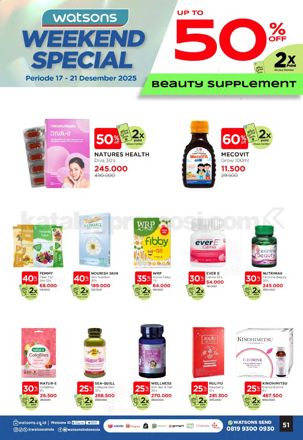 WATSONS WEEKEND SPECIAL Diskon hingga 50% Berlaku mulai tanggal 17-21 Desember 2025
