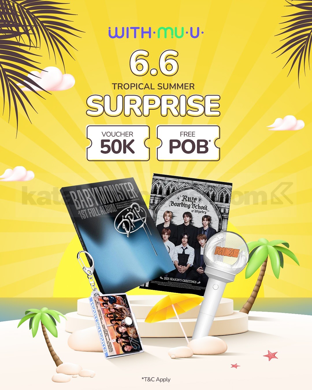 WITHMUU kasih kamu deal keren di 6.6 Tropical Summer Surprise! 🎉 Dapatkan voucher Rp50 ribu buat beli berbagai merchandise K-Pop hits mulai dari album, photobook, lightstick sampai photocard favorit kamu. Plus, dapat bonus Free POB yang bikin belanja makin worth it!