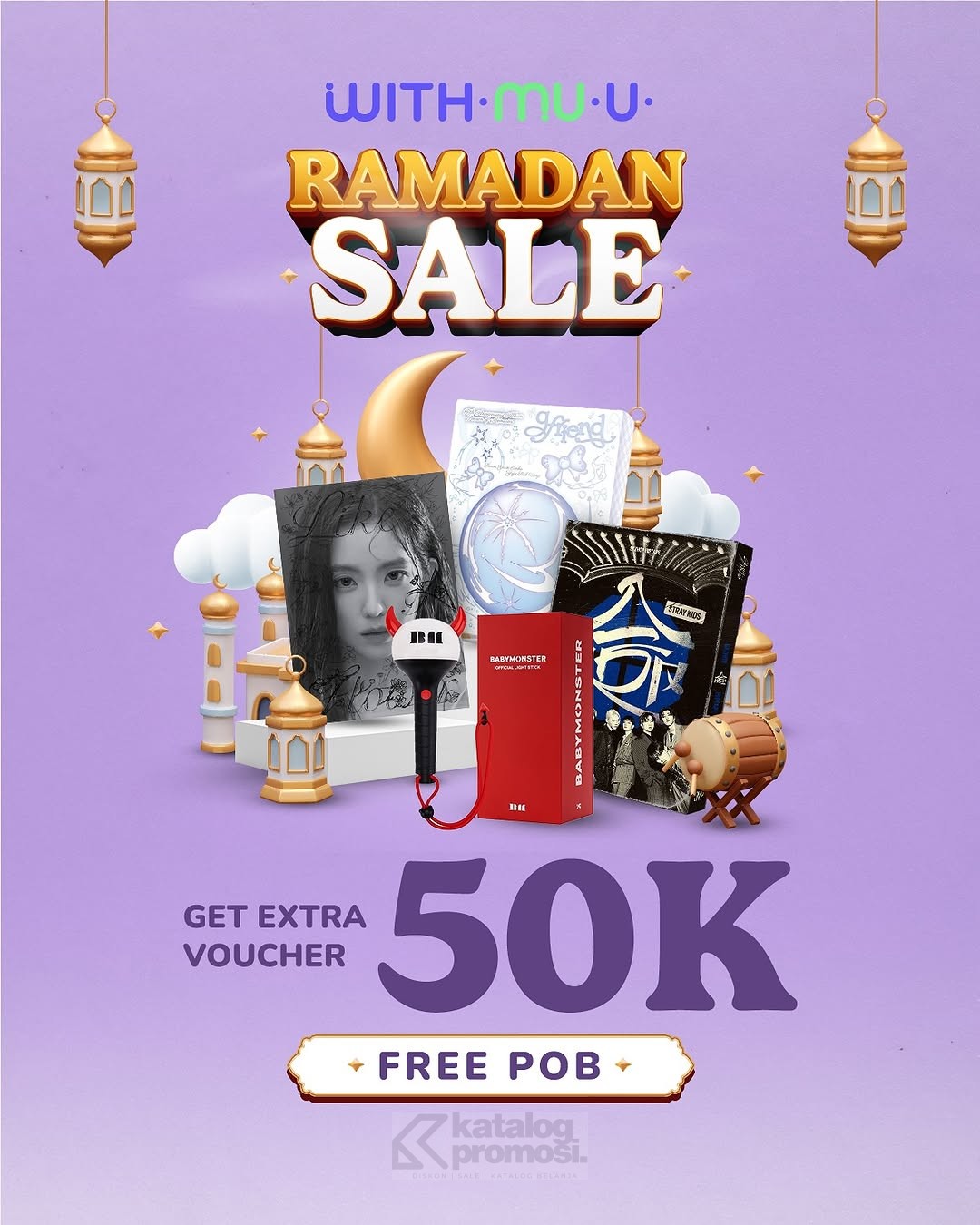 Ramadan kali ini makin seru buat para K-Popers! ✨ Promo WITHMUU hadir buat kamu yang pengen koleksi K-Pop favorit dengan harga lebih hemat. Dari album terbaru, photocard, hingga lightstick kece, semuanya bisa kamu dapetin dengan ekstra voucher Rp50 ribu dan gratis POB! 😍